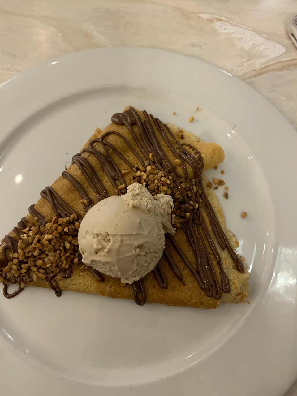 We got a chocolate crepe, which was delicious and a hot chocolate, which could have been a bit warmer when received - however this was rectified by the staff. The interior of this place is sleek.